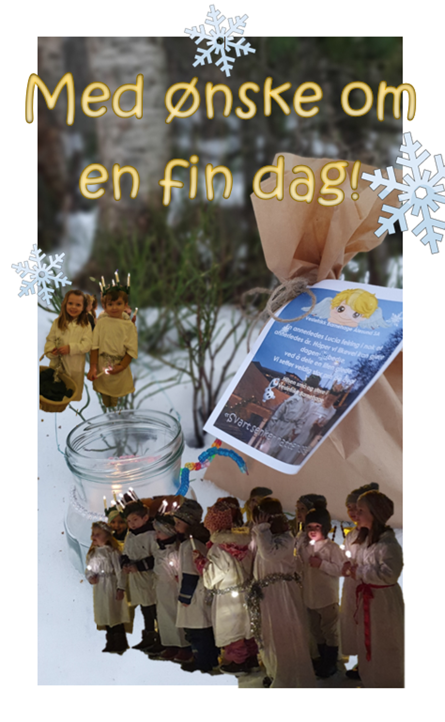 Selv om det ikke ble helt slik vi hadde forestilt oss, så ble det en skikkelig fin Luciafeiring både ute, (med førskolebarna + foreldre) og inne. Øynene på Sol barna, (1 åringene), holdt på å trille ut, når de kom å sang inne hos de. De var stum av begeistring og gråt når Lucia toget gikk ;-) Når barna skal hjem i dag, så venter en lite glede de kan ha med seg hjem til til alle sammen, siden vi ikke fikk invitert alle inn i år heller <3