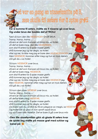 Barna fikk delta på nissedisco, juleverksted og juletregang, og Stjernebarna fremførte et flott skuespill om de tre nissene som skulle til seters for å spise grøt.